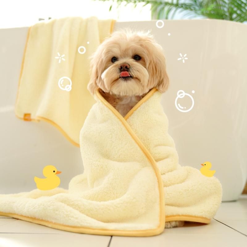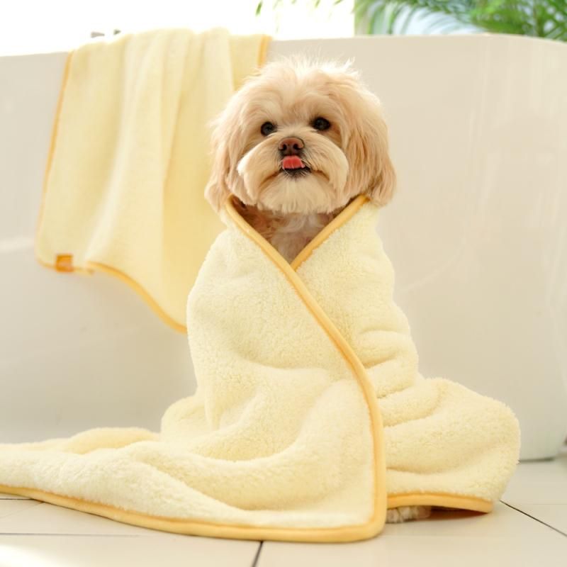 一般的なタオルよりも高い吸水性を備えており、入浴後の水分を素早く吸収。ドライヤーの時間も短縮でき、愛犬への負担を軽減します。