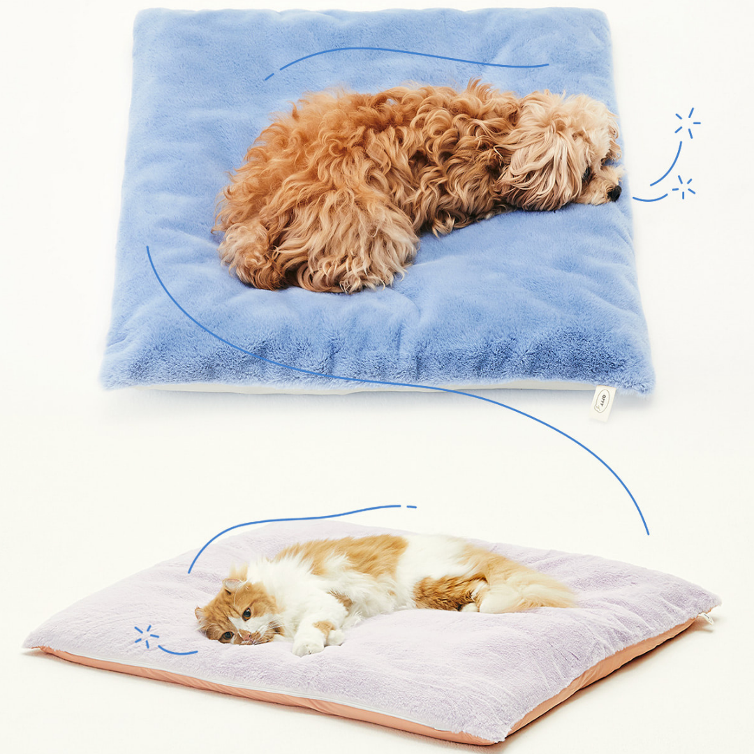 蒸し暑い夏、硬くて重いクールマットや大理石では、わんちゃん・ねこちゃんがくつろぎにくいことがあります。そんな時におすすめなのが、このリバーシブルお布団です。冷感生地に特殊ナノ加工を施しているため、寝ころぶだけでひんやり気持ちよく過ごせます。