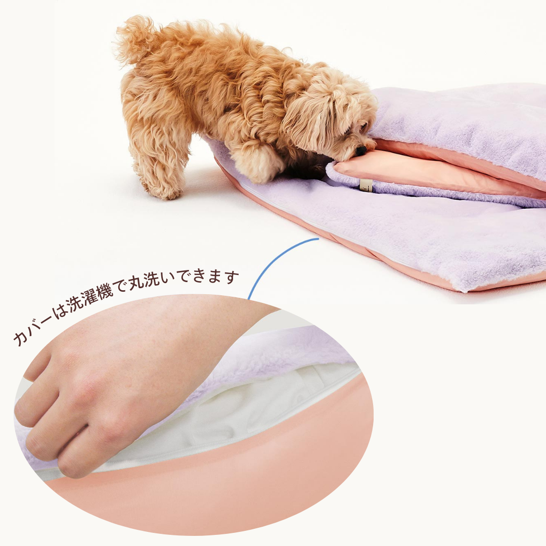★おやすみクッションとリバーシブルお布団の組み合わせは、ぐっすり眠るのにぴったりです。おうちのクッションの上にリバーシブルお布団を敷いてあげると、さらに暖かく快適な居場所が作れます。