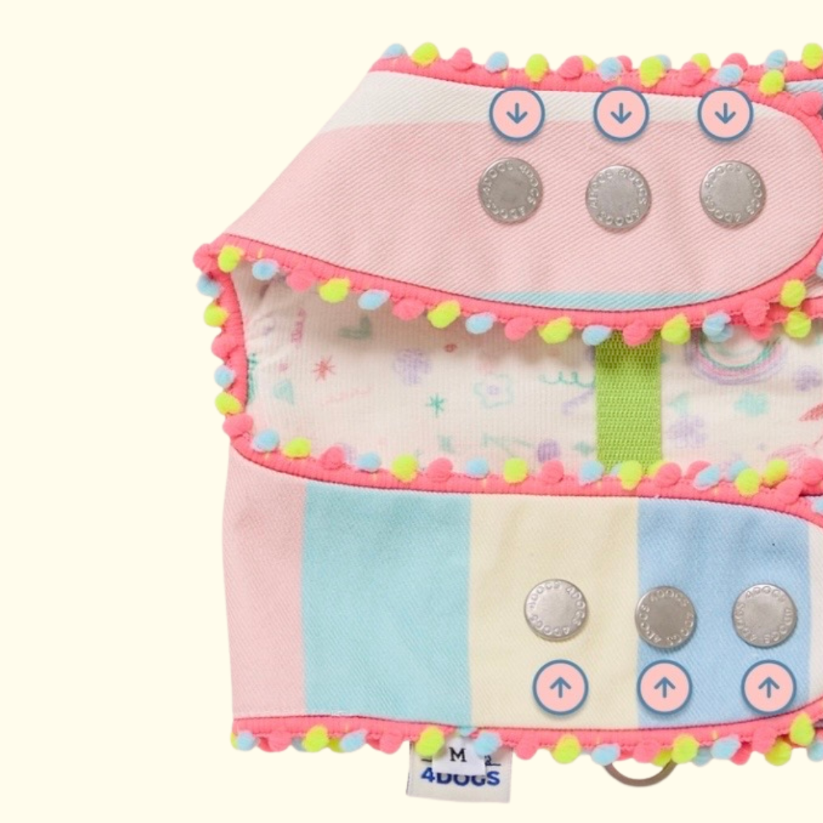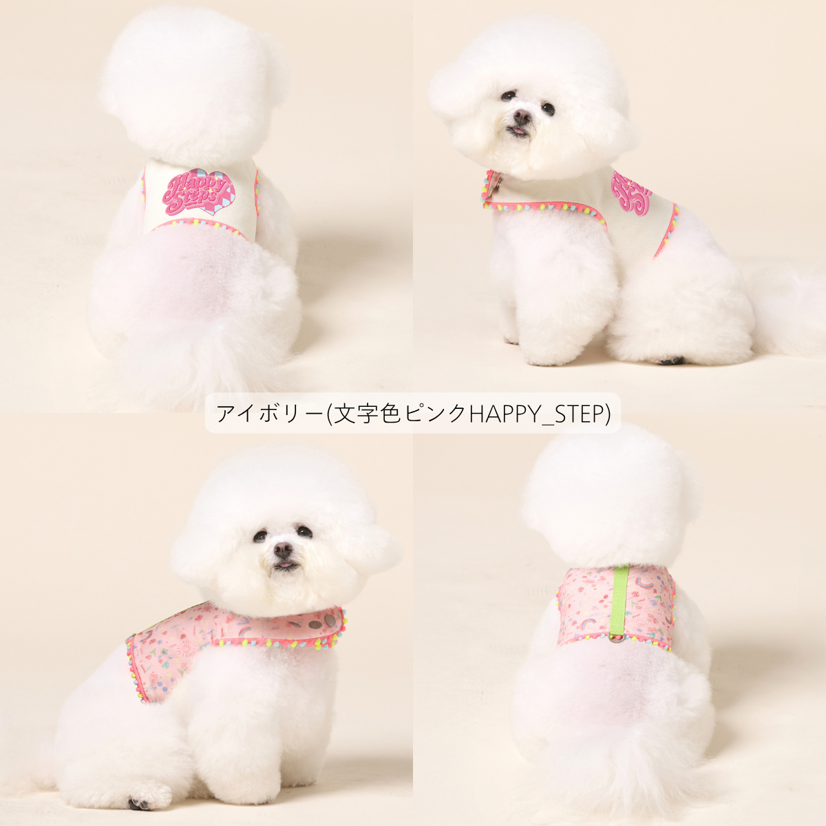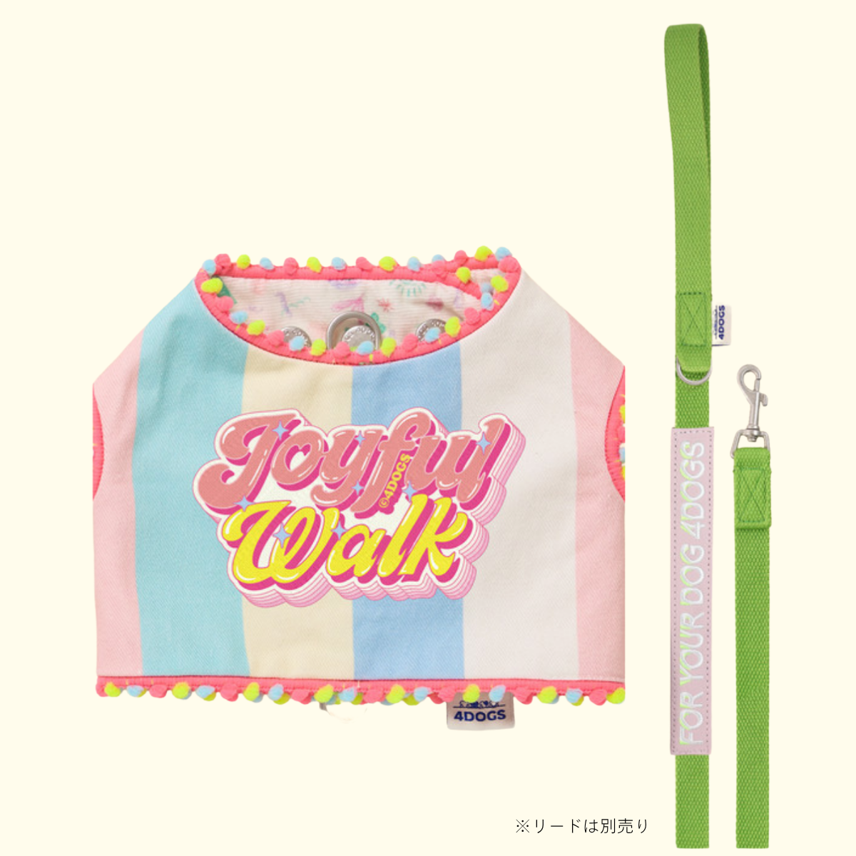 4DOGS定番のリバーシブルハーネスが、今年は可愛いパステルカラーとポップな文字デザインで登場。
