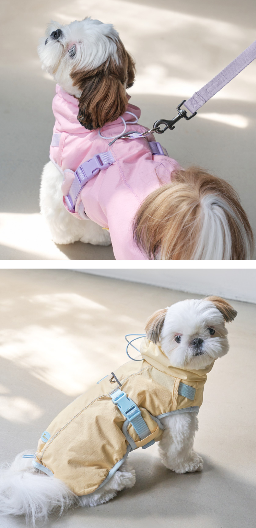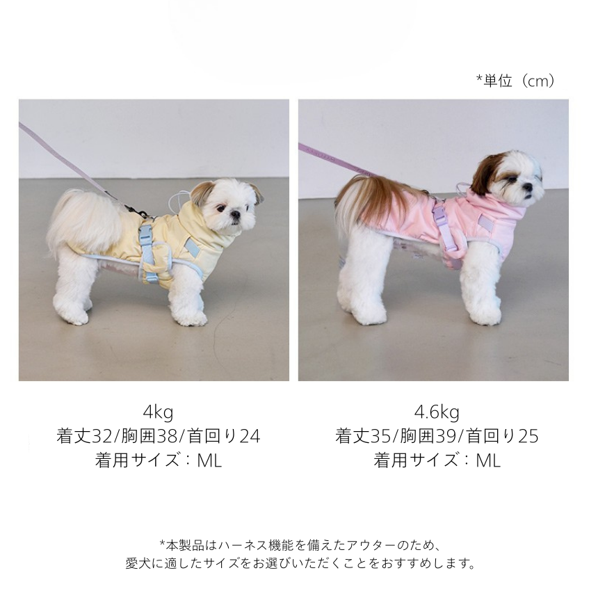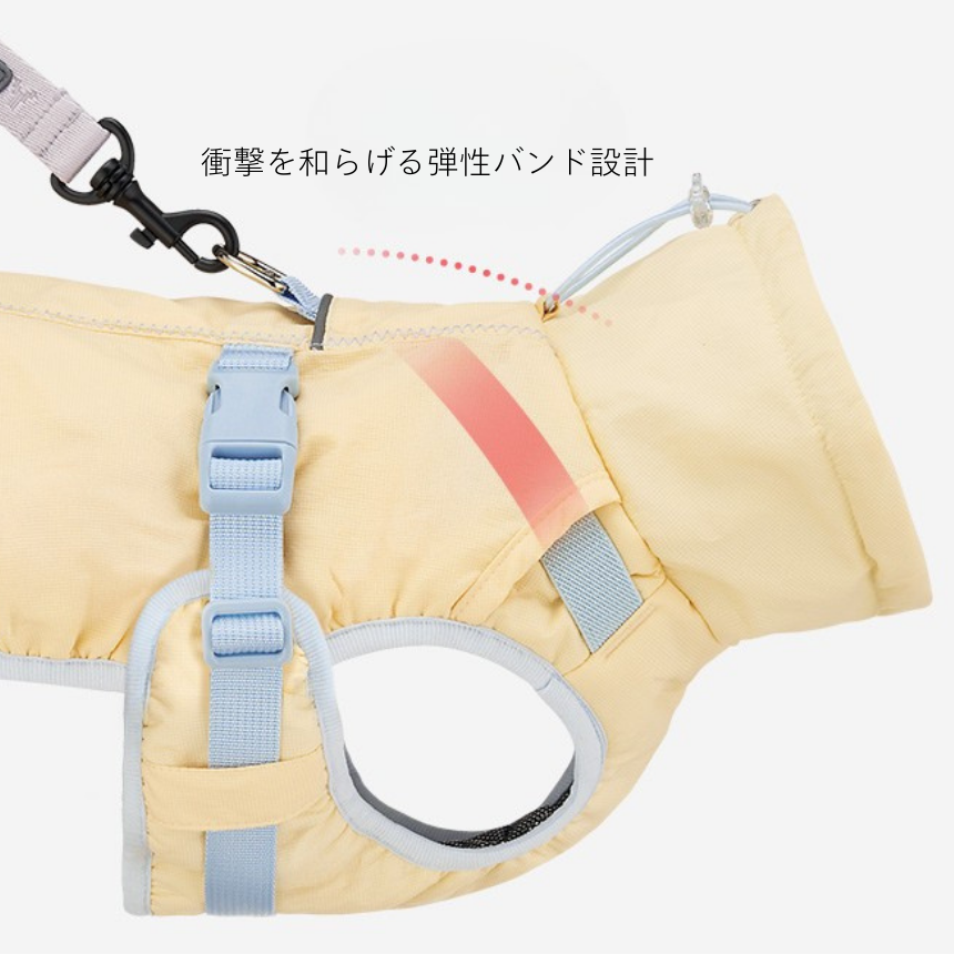 アウターとハーネスが一体になったハーネスダウンは、簡単に着脱でき、愛犬にもオーナー様にも使いやすい設計です。