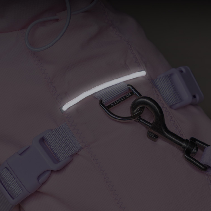 光を反射するリフレクターラインを備えており、暗い夜でも安全に散歩できます。