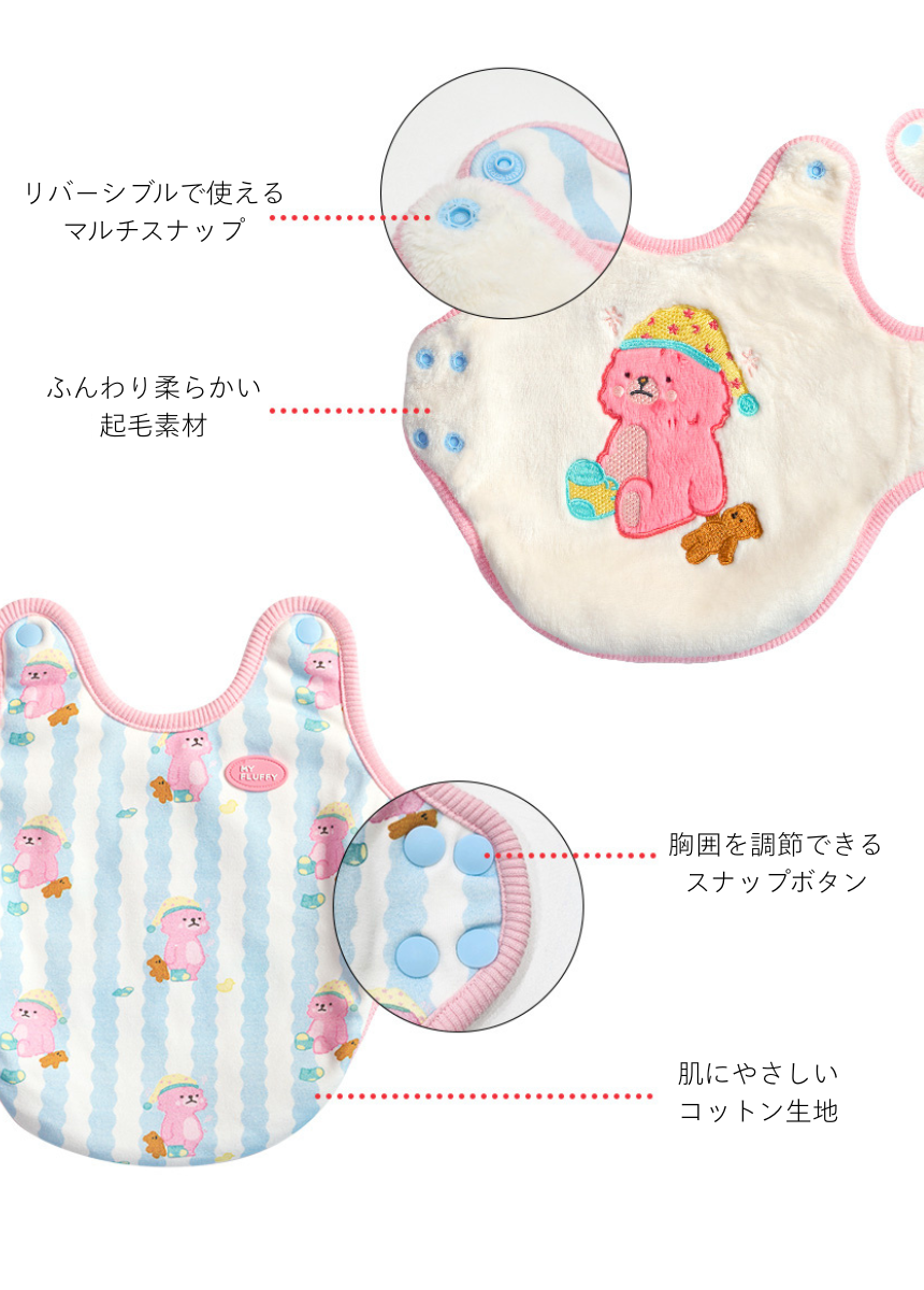 ◎暖かさをプラスする1cm厚のふんわり柔らかいボア生地と、肌にやさしいコットン生地を使用した、リバーシブルで着用できる実用的なアイテムです。
